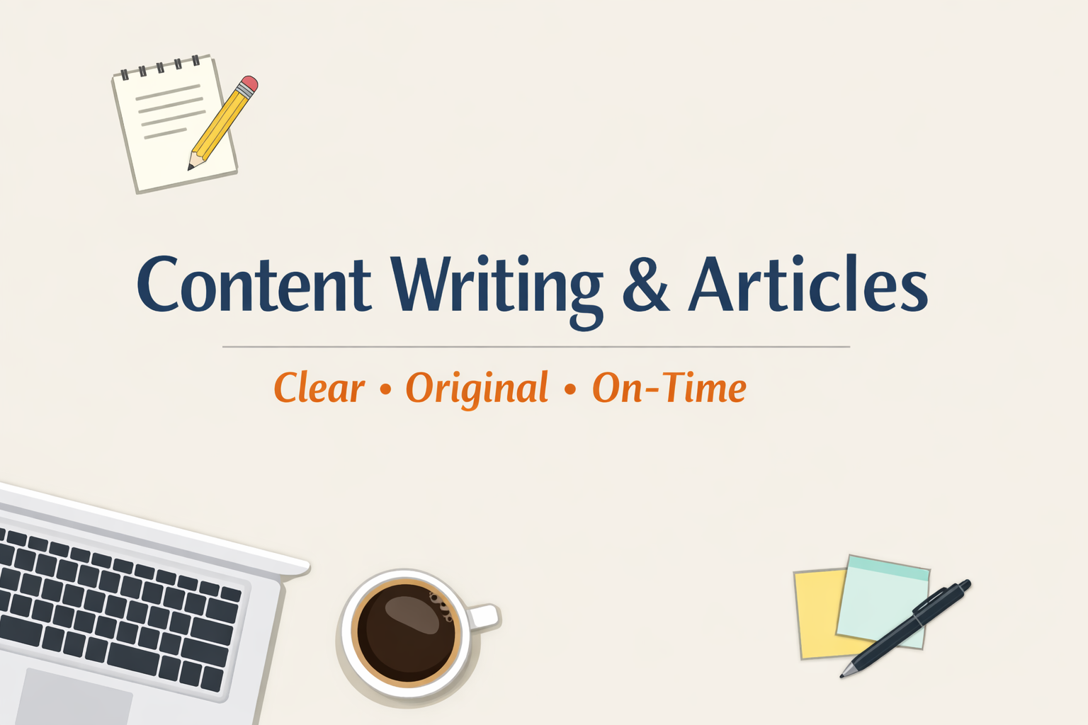 I offer basic content writing services including blog writing, article writing, and simple rewriting. I focus on clear, original content, timely delivery, and client satisfaction.
